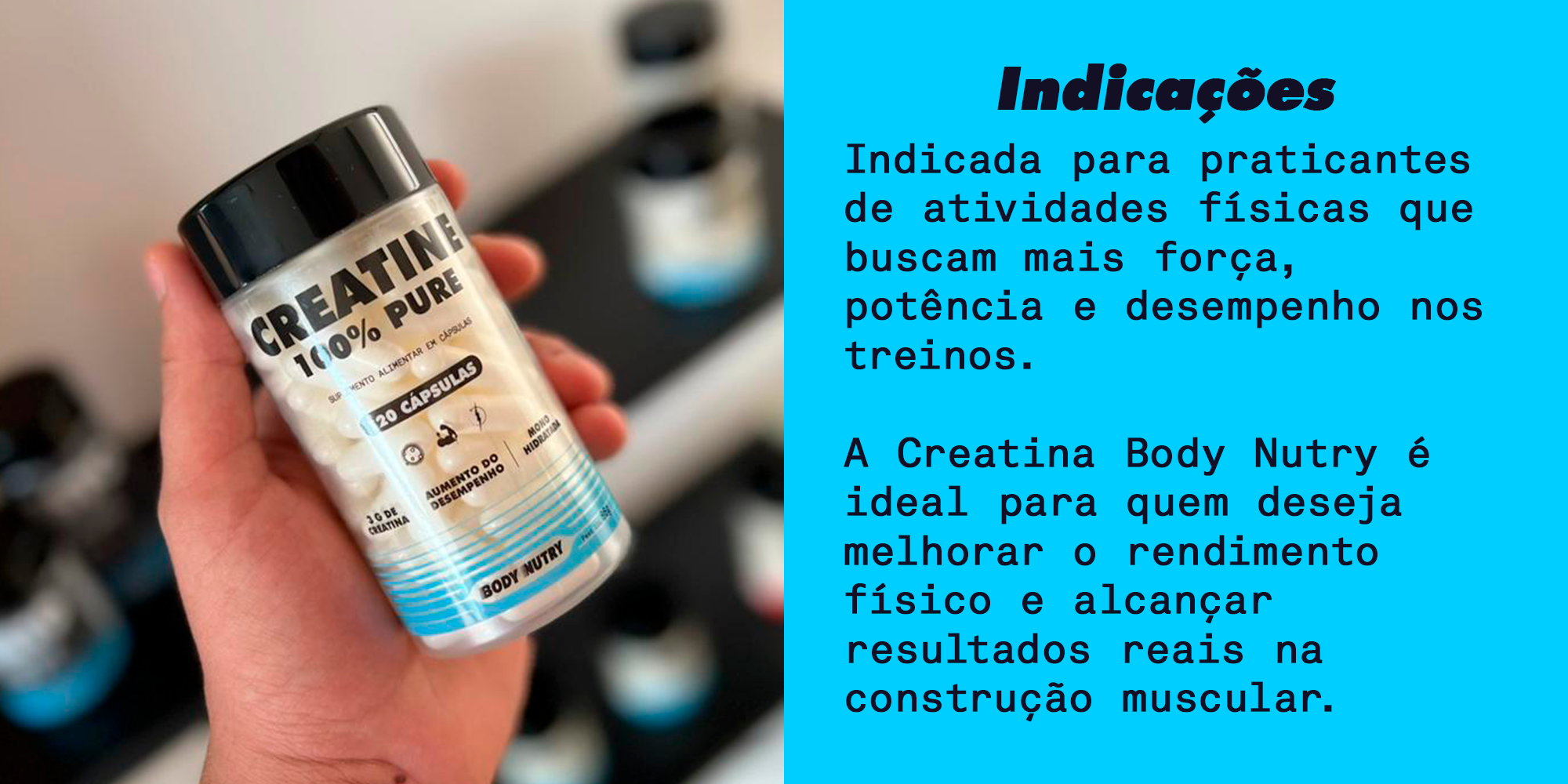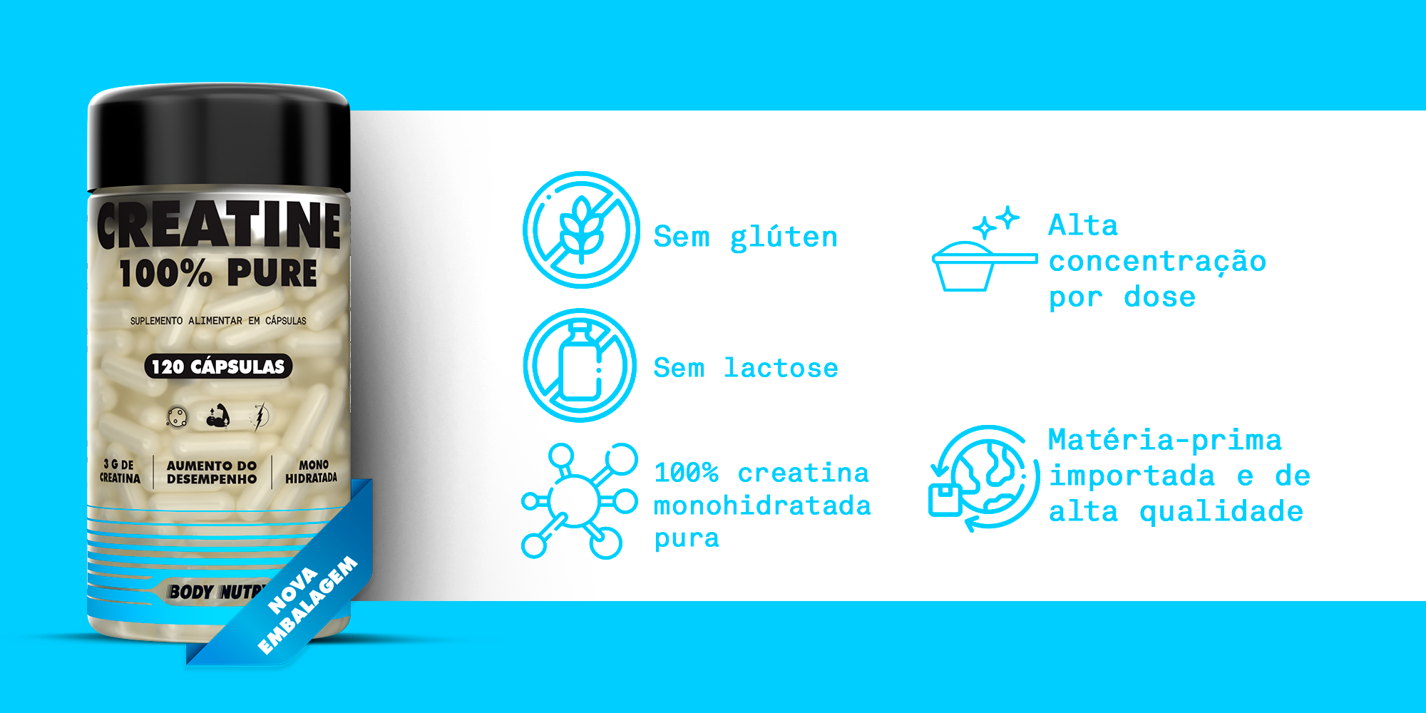 Creatine 100% Pura - 120 Cápsulas - Body Nutry | Aumento de Força