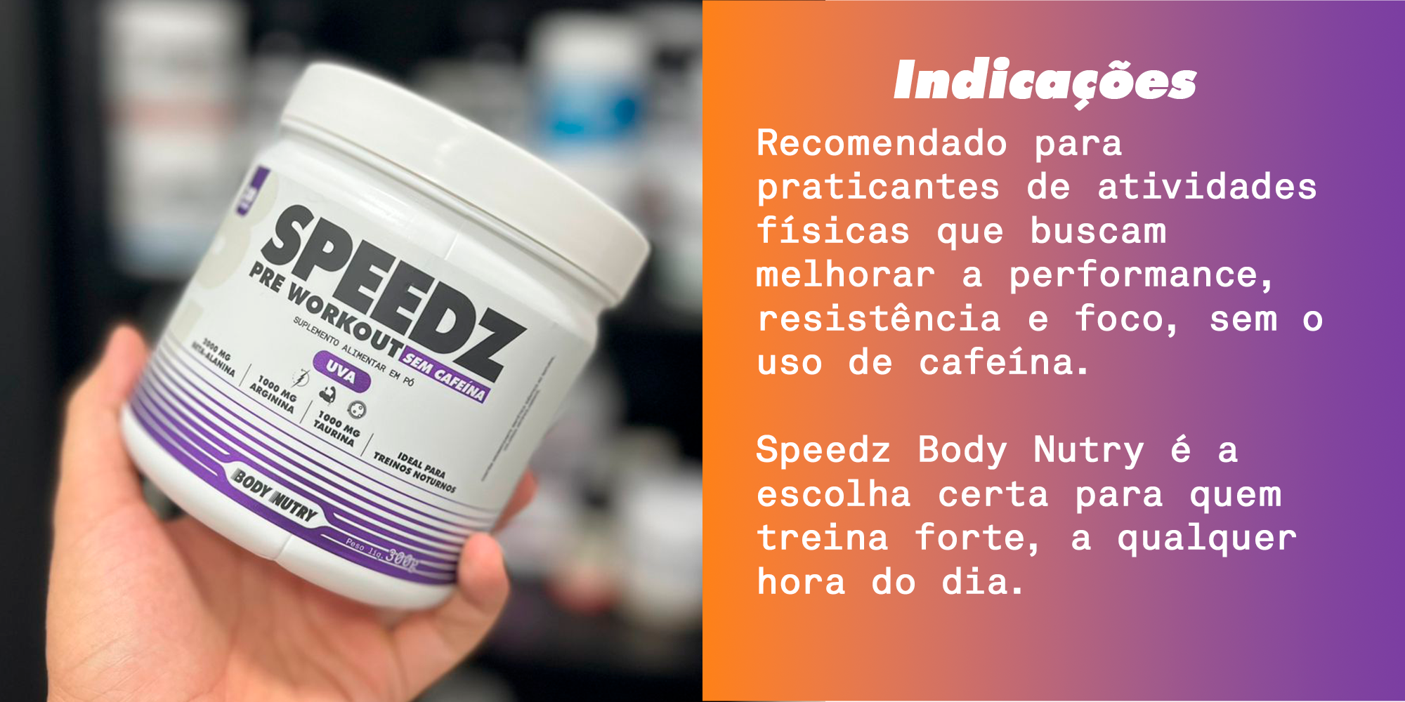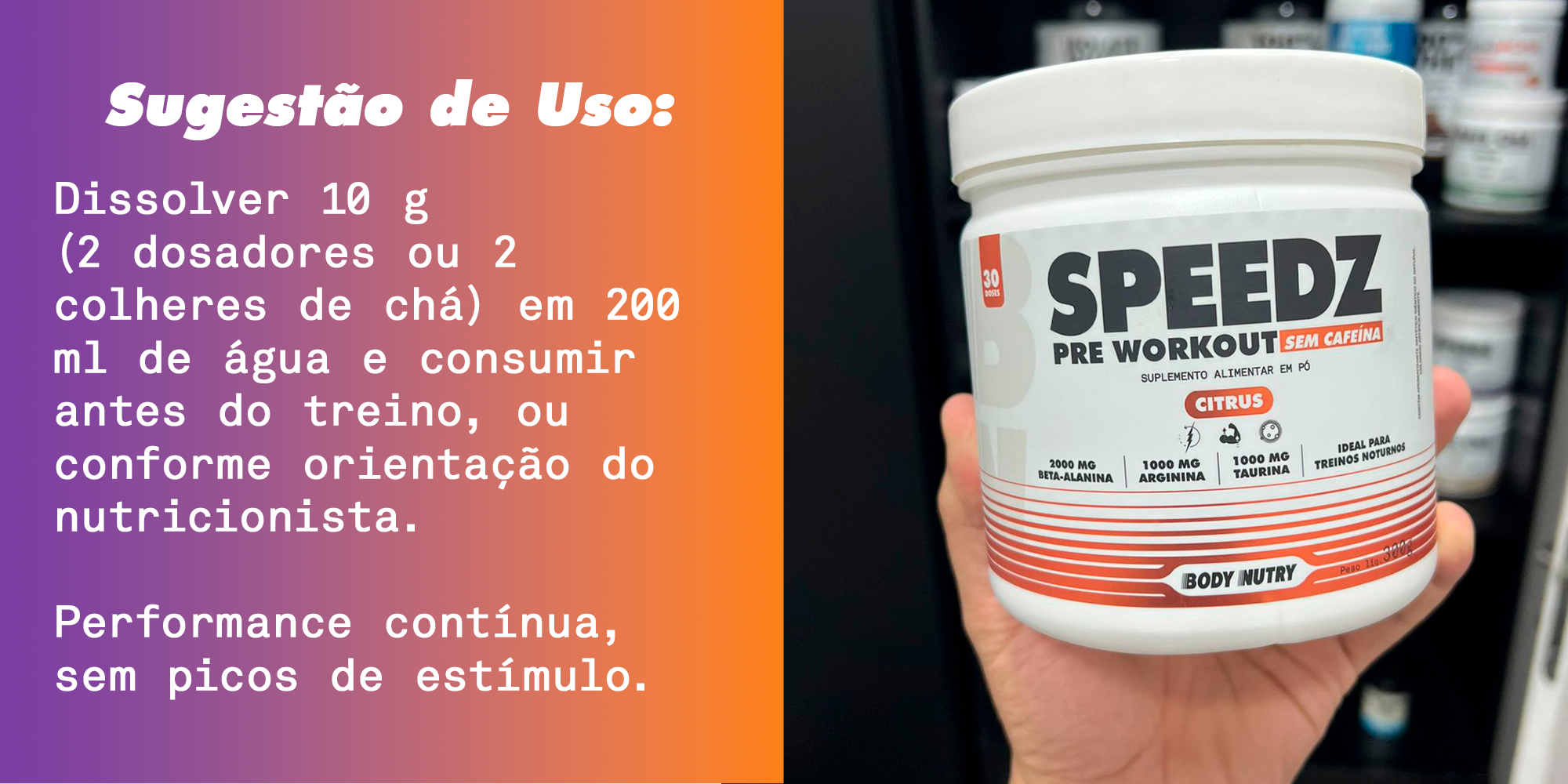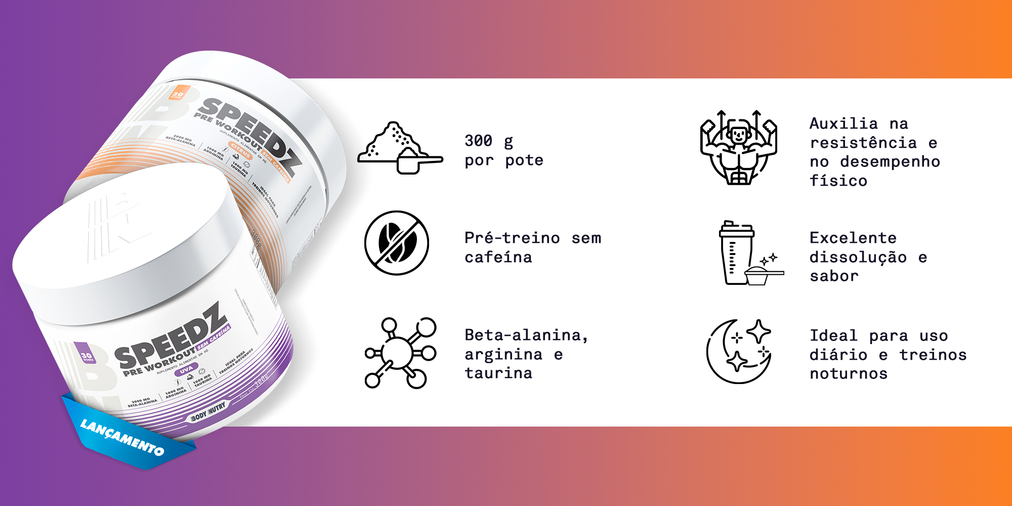 Speedz Pre-Workout Sem Cafeína - 300g - Body Nutry | Beta-Alanina + Arginina + Taurina