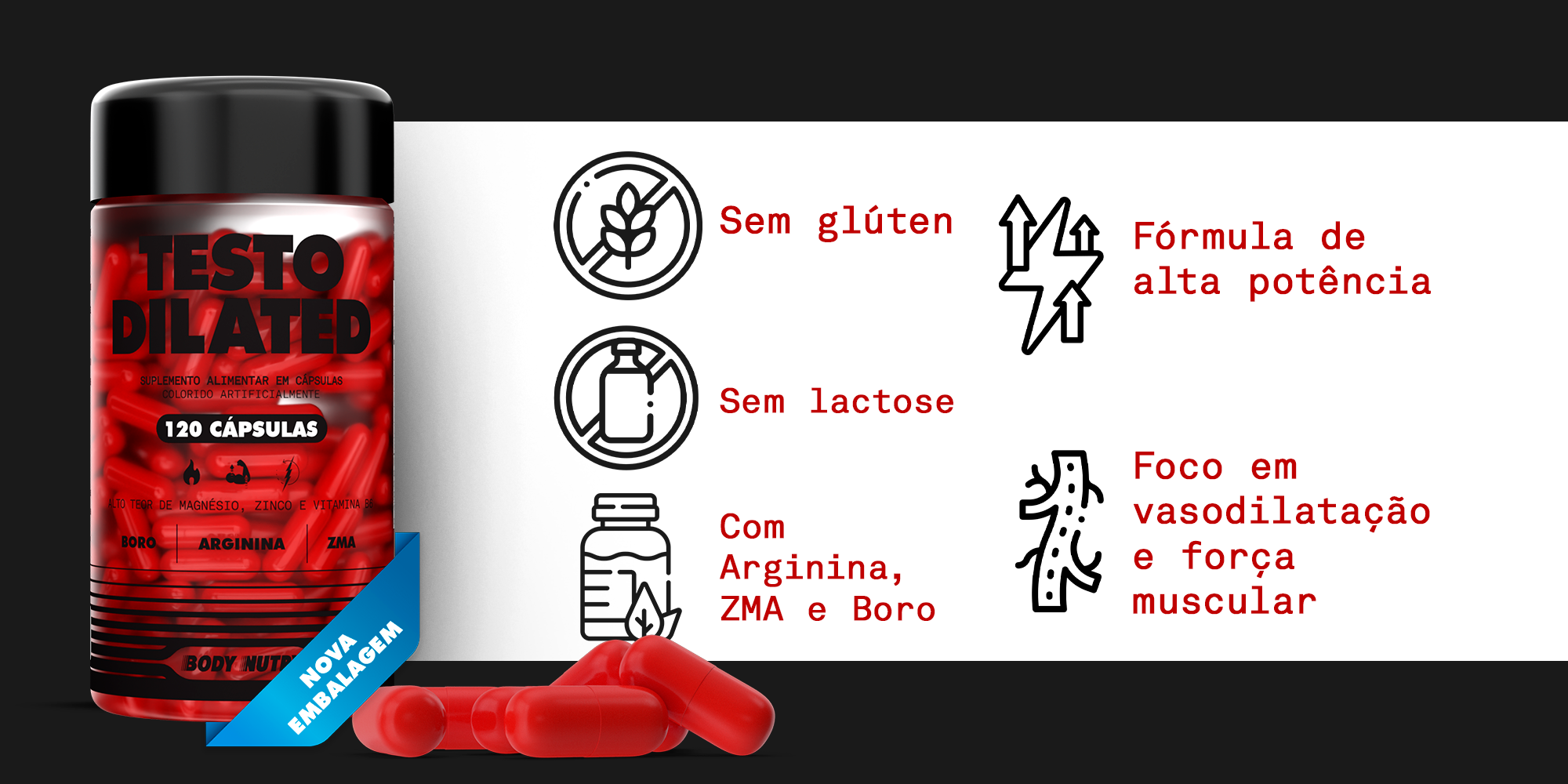 Testo Dilated - 120 Cápsulas - Body Nutry | Força, Vitalidade e Vasodilatação